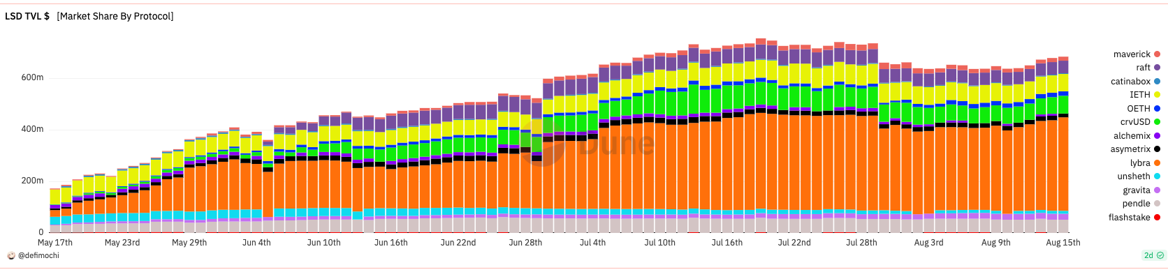 LSDfi protocols have seen a swift surge in Total Value Locked (TVL) over recent months, primarily due to the widespread embrace of liquid staking. As this trend gained momentum, the combined TVL across leading LSDfi protocols has surpassed the milestone of $400 million, more than twofold what it was just a month ago.